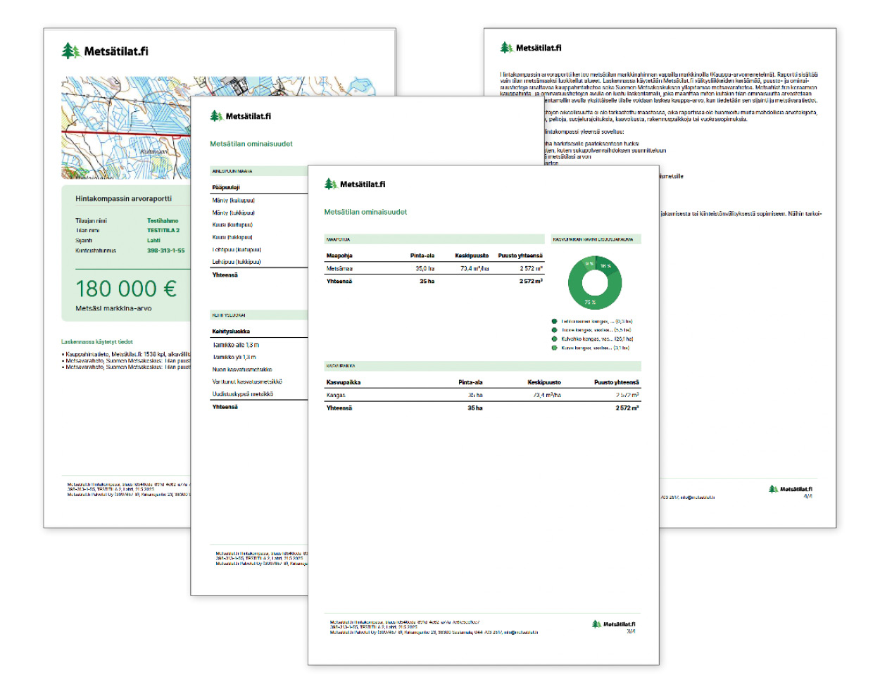 Näet raportilla myös arvonmäärityksen pohjana käytetyt tiedot metsätilan puustosta ja maapohjasta.